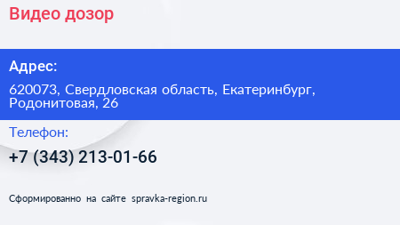 Видео дозор по адресу 620073, Свердловская область, Екатеринбург, Родонитовая, 26 в дальнейшем Организация, размещена в следующих категориях: