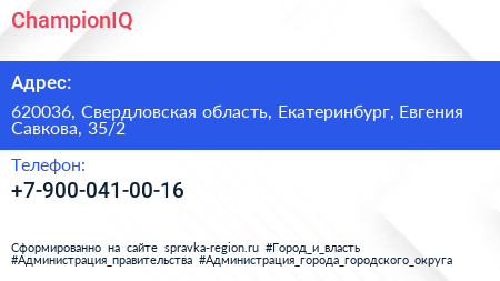 ChampionIQ по адресу 620036, Свердловская область, Екатеринбург, Евгения Савкова, 35/2 в дальнейшем Организация, размещена в следующих категориях: