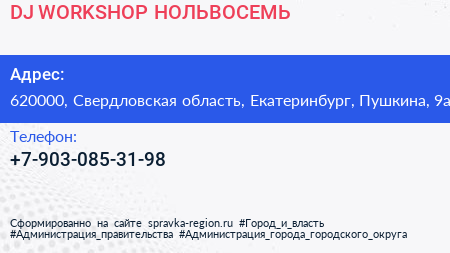 DJ WORKSHOP #НОЛЬВОСЕМЬ по адресу 620000, Свердловская область, Екатеринбург, Пушкина, 9а в дальнейшем Организация, размещена в следующих категориях: