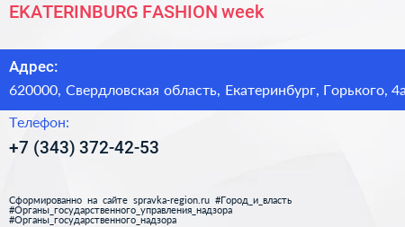 EKATERINBURG FASHION week по адресу 620000, Свердловская область, Екатеринбург, Горького, 4а в дальнейшем Организация, размещена в следующих категориях: