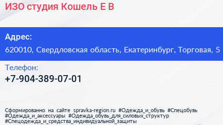 ИЗО-студия Кошель Е.В. по адресу 620010, Свердловская область, Екатеринбург, Торговая, 5 в дальнейшем Организация, размещена в следующих категориях: