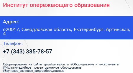 Институт опережающего образования по адресу 620017, Свердловская область, Екатеринбург, Артинская, 4 в дальнейшем Организация, размещена в следующих категориях: