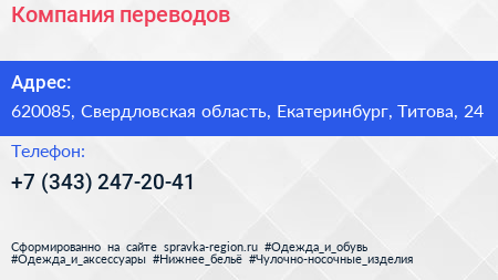 Компания переводов по адресу 620085, Свердловская область, Екатеринбург, Титова, 24 в дальнейшем Организация, размещена в следующих категориях: