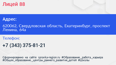 Лицей №88 по адресу 620062, Свердловская область, Екатеринбург, проспект Ленина, 64а в дальнейшем Организация, размещена в следующих категориях: