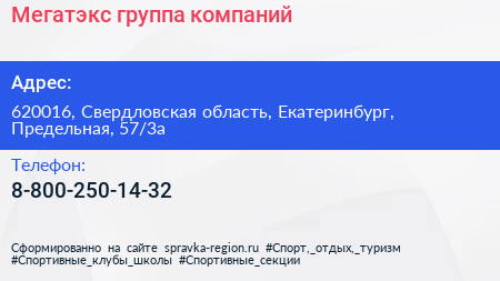 Мегатэкс, группа компаний по адресу 620016, Свердловская область, Екатеринбург, Предельная, 57/3а в дальнейшем Организация, размещена в следующих категориях: