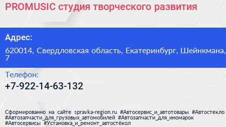 PROMUSIC, студия творческого развития по адресу 620014, Свердловская область, Екатеринбург, Шейнкмана, 7 в дальнейшем Организация, размещена в следующих категориях: