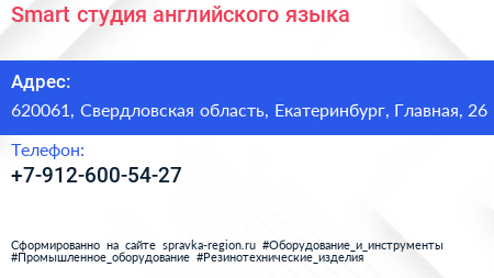 Smart, студия английского языка по адресу 620061, Свердловская область, Екатеринбург, Главная, 26 в дальнейшем Организация, размещена в следующих категориях: