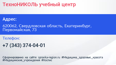 ТехноНИКОЛЬ, учебный центр по адресу 620062, Свердловская область, Екатеринбург, Первомайская, 73 в дальнейшем Организация, размещена в следующих категориях: