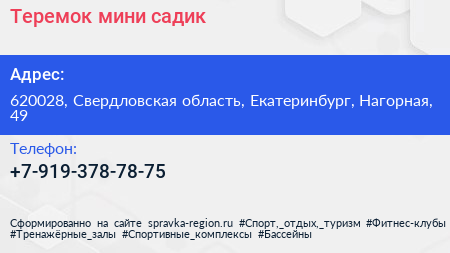 Теремок, мини-садик по адресу 620028, Свердловская область, Екатеринбург, Нагорная, 49 в дальнейшем Организация, размещена в следующих категориях: