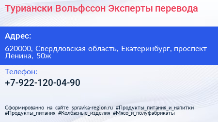 Туриански & Вольфссон. Эксперты перевода по адресу 620000, Свердловская область, Екатеринбург, проспект Ленина, 50ж в дальнейшем Организация, размещена в следующих категориях: