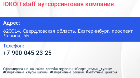 ЮКОН-staff, аутсорсинговая компания по адресу 620014, Свердловская область, Екатеринбург, проспект Ленина, 5Б в дальнейшем Организация, размещена в следующих категориях: