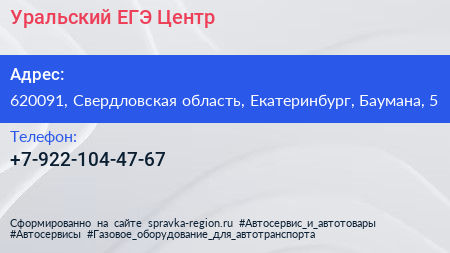 Уральский ЕГЭ Центр по адресу 620091, Свердловская область, Екатеринбург, Баумана, 5 в дальнейшем Организация, размещена в следующих категориях: