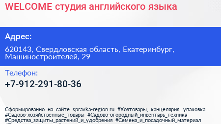 WELCOME, студия английского языка по адресу 620143, Свердловская область, Екатеринбург, Машиностроителей, 29 в дальнейшем Организация, размещена в следующих категориях: