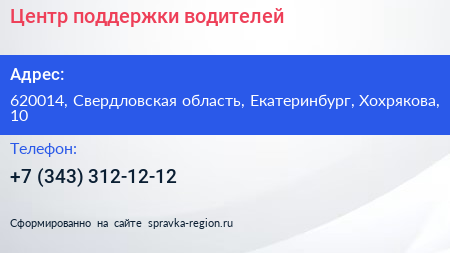 Центр поддержки водителей по адресу 620014, Свердловская область, Екатеринбург, Хохрякова, 10 в дальнейшем Организация, размещена в следующих категориях: