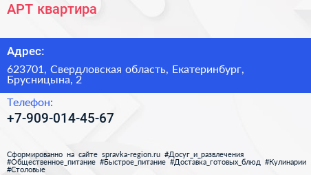 АРТ квартира по адресу 623701, Свердловская область, Екатеринбург, Брусницына, 2 в дальнейшем Организация, размещена в следующих категориях: