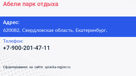 Абели, парк отдыха по адресу 620082, Свердловская область, Екатеринбург, в дальнейшем Организация, размещена в следующих категориях:
