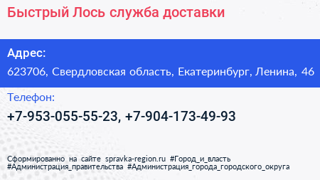 Быстрый Лось, служба доставки по адресу 623706, Свердловская область, Екатеринбург, Ленина, 46 в дальнейшем Организация, размещена в следующих категориях: