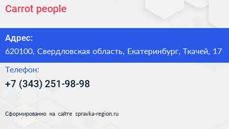Carrot people по адресу 620100, Свердловская область, Екатеринбург, Ткачей, 17 в дальнейшем Организация, размещена в следующих категориях: