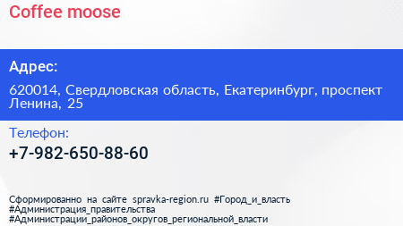 Coffee moose по адресу 620014, Свердловская область, Екатеринбург, проспект Ленина, 25 в дальнейшем Организация, размещена в следующих категориях: