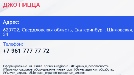 ДЖО ПИЦЦА по адресу 623702, Свердловская область, Екатеринбург, Шиловская, 34 в дальнейшем Организация, размещена в следующих категориях: