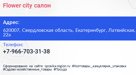 Flower city, салон по адресу 620007, Свердловская область, Екатеринбург, Латвийская, 22а в дальнейшем Организация, размещена в следующих категориях:
