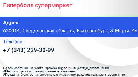 Гипербола, супермаркет по адресу 620014, Свердловская область, Екатеринбург, 8 Марта, 46 в дальнейшем Организация, размещена в следующих категориях: