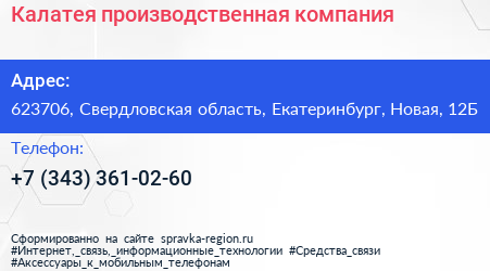Калатея, производственная компания по адресу 623706, Свердловская область, Екатеринбург, Новая, 12Б в дальнейшем Организация, размещена в следующих категориях: