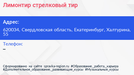 Лимонтир, стрелковый тир по адресу 620034, Свердловская область, Екатеринбург, Халтурина, 55 в дальнейшем Организация, размещена в следующих категориях: