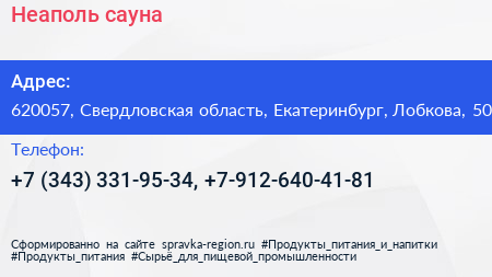 Неаполь, сауна по адресу 620057, Свердловская область, Екатеринбург, Лобкова, 50 в дальнейшем Организация, размещена в следующих категориях:
