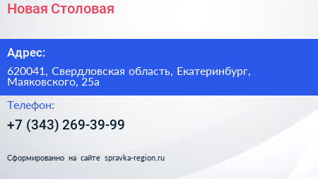 Новая Столовая по адресу 620041, Свердловская область, Екатеринбург, Маяковского, 25а в дальнейшем Организация, размещена в следующих категориях:
