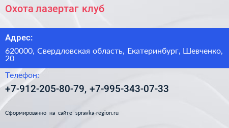 Охота, лазертаг-клуб по адресу 620000, Свердловская область, Екатеринбург, Шевченко, 20 в дальнейшем Организация, размещена в следующих категориях: