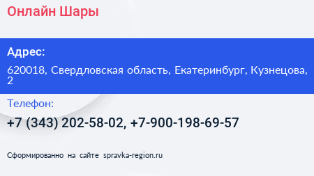 Онлайн Шары по адресу 620018, Свердловская область, Екатеринбург, Кузнецова, 2 в дальнейшем Организация, размещена в следующих категориях: