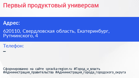 Первый продуктовый, универсам по адресу 620110, Свердловская область, Екатеринбург, Рутминского, 4 в дальнейшем Организация, размещена в следующих категориях:
