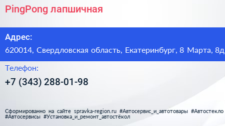 PingPong, лапшичная по адресу 620014, Свердловская область, Екатеринбург, 8 Марта, 8д в дальнейшем Организация, размещена в следующих категориях: