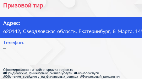 Призовой тир по адресу 620142, Свердловская область, Екатеринбург, 8 Марта, 149 в дальнейшем Организация, размещена в следующих категориях: