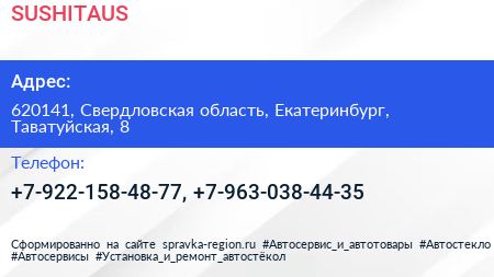 SUSHITAUS по адресу 620141, Свердловская область, Екатеринбург, Таватуйская, 8 в дальнейшем Организация, размещена в следующих категориях: