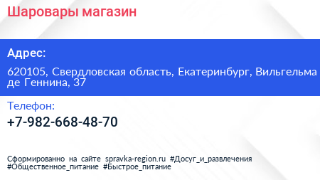 Адрес: Свердловская область, Екатеринбург, Шофёров, 4а