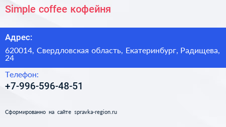 Simple coffee, кофейня по адресу 620014, Свердловская область, Екатеринбург, Радищева, 24 в дальнейшем Организация, размещена в следующих категориях: