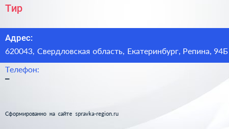 Тир по адресу 620043, Свердловская область, Екатеринбург, Репина, 94Б в дальнейшем Организация, размещена в следующих категориях: