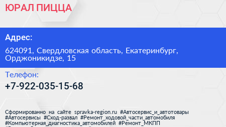 ЮРАЛ ПИЦЦА по адресу 624091, Свердловская область, Екатеринбург, Орджоникидзе, 15 в дальнейшем Организация, размещена в следующих категориях: