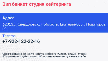 Вип банкет, студия кейтеринга по адресу 620135, Свердловская область, Екатеринбург, Новаторов, 8в в дальнейшем Организация, размещена в следующих категориях: