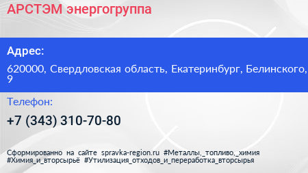 АРСТЭМ, энергогруппа по адресу 620000, Свердловская область, Екатеринбург, Белинского, 9 в дальнейшем Организация, размещена в следующих категориях: