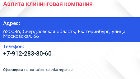 Аэлита, клининговая компания по адресу 620086, Свердловская область, Екатеринбург, улица Московская, 66 в дальнейшем Организация, размещена в следующих категориях:
