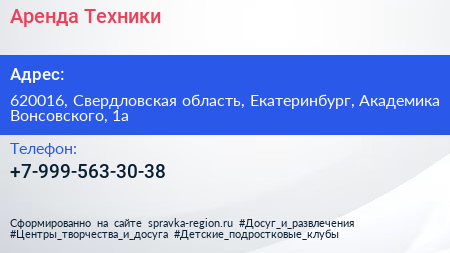 Аренда Техники по адресу 620016, Свердловская область, Екатеринбург, Академика Вонсовского, 1а в дальнейшем Организация, размещена в следующих категориях: