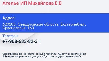 Ателье, ИП Михайлова Е.В. по адресу 620105, Свердловская область, Екатеринбург, Краснолесья, 163 в дальнейшем Организация, размещена в следующих категориях: