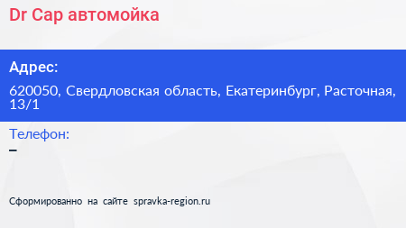 Dr.Cap, автомойка по адресу 620050, Свердловская область, Екатеринбург, Расточная, 13/1 в дальнейшем Организация, размещена в следующих категориях: