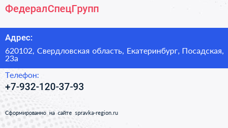 ФедералСпецГрупп по адресу 620102, Свердловская область, Екатеринбург, Посадская, 23а в дальнейшем Организация, размещена в следующих категориях: