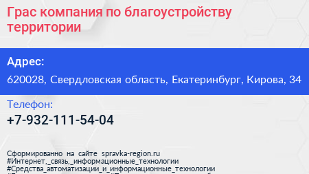 Грас, компания по благоустройству территории по адресу 620028, Свердловская область, Екатеринбург, Кирова, 34 в дальнейшем Организация, размещена в следующих категориях: