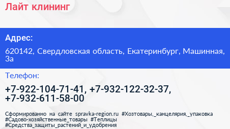 Лайт клининг по адресу 620142, Свердловская область, Екатеринбург, Машинная, 3а в дальнейшем Организация, размещена в следующих категориях: