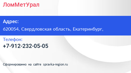 ЛомМетУрал по адресу 620054, Свердловская область, Екатеринбург, в дальнейшем Организация, размещена в следующих категориях:
